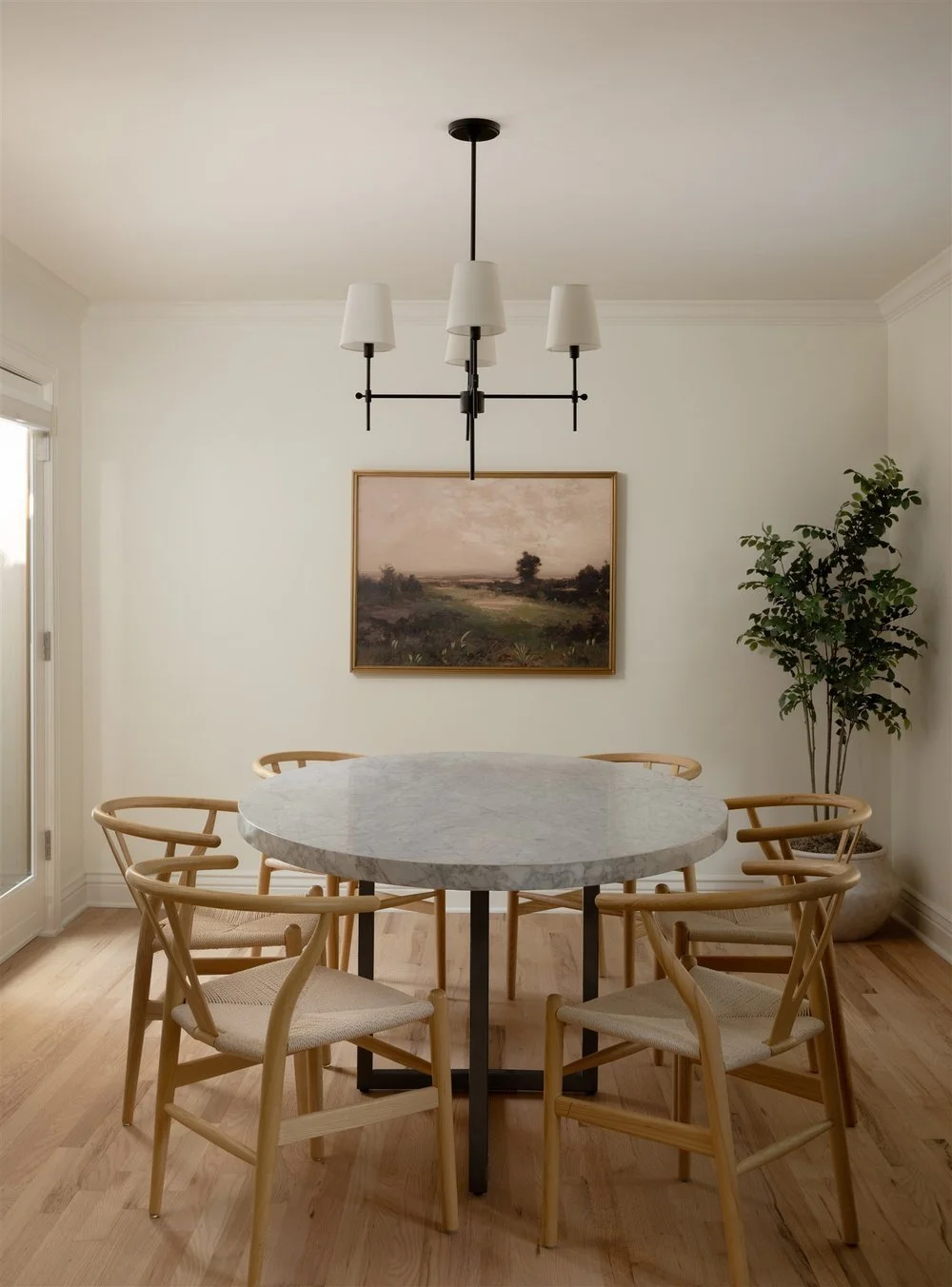 The first stage of this luxury home design involved refurbishing the flooring into bright hardwood oak, which instantly refreshed the interiors. We followed this with custom lighting from Visual Comfort, state-of-the-art appliances in the kitchen, and customized living spaces to achieve a more refined aesthetic.