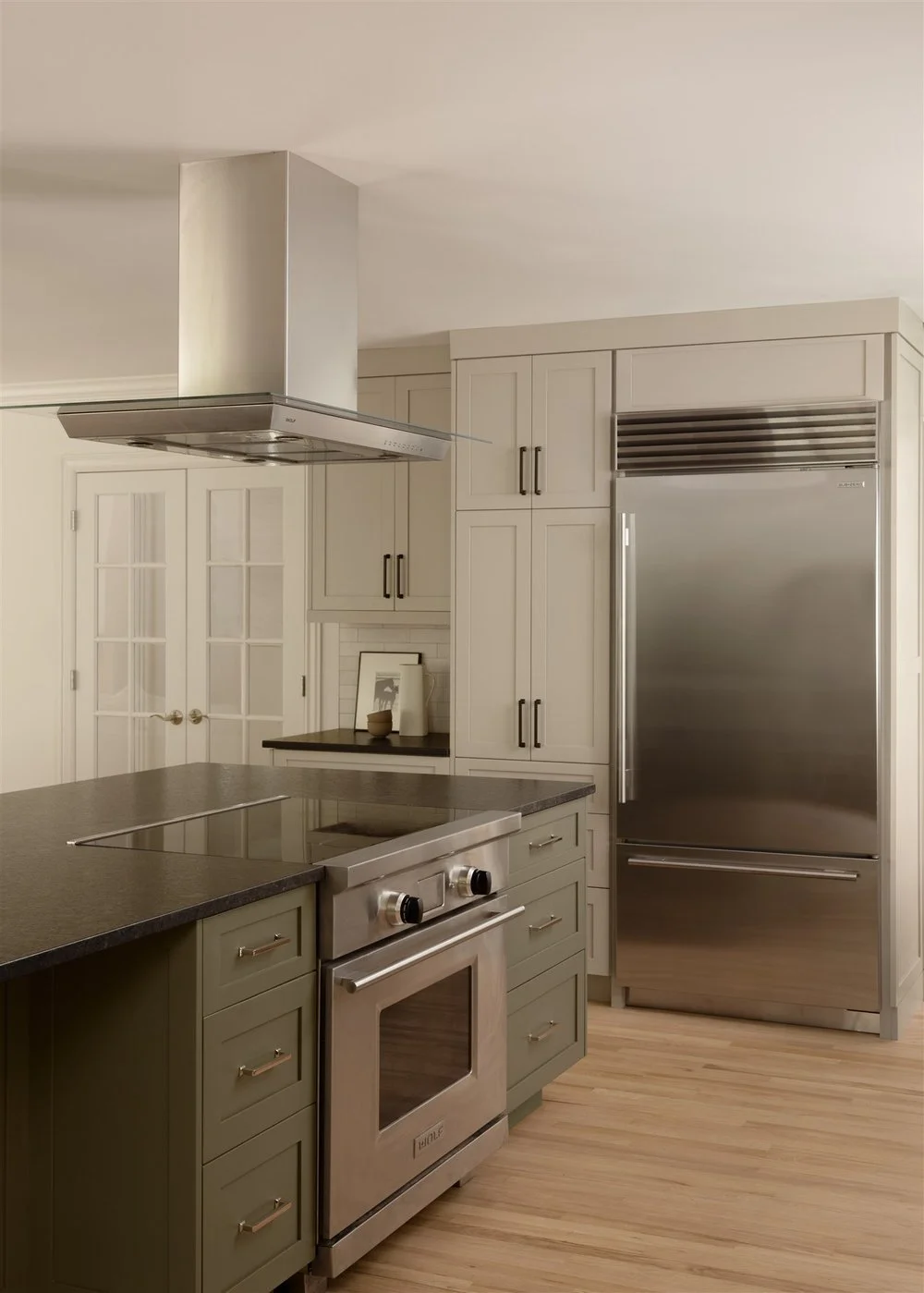 Excellent design is revealed in the details. To elevate the craftsman-style home into a more modern aesthetic, we used our creativity paired with materials of superior quality. One of my favorite design moments was working with the client to select the metal finishes in the home. They preferred polished nickel for the hardware and plumbing because of its warmth but they also liked the look of all black. I love mixing metals to expand beyond monotone and bring a more multi-dimensional aesthetic, so we leaned into this concept of blending both. The result is a dynamic expression of metals that look incredible against the green and grey colorways and tell a strong yet cohesive visual story.