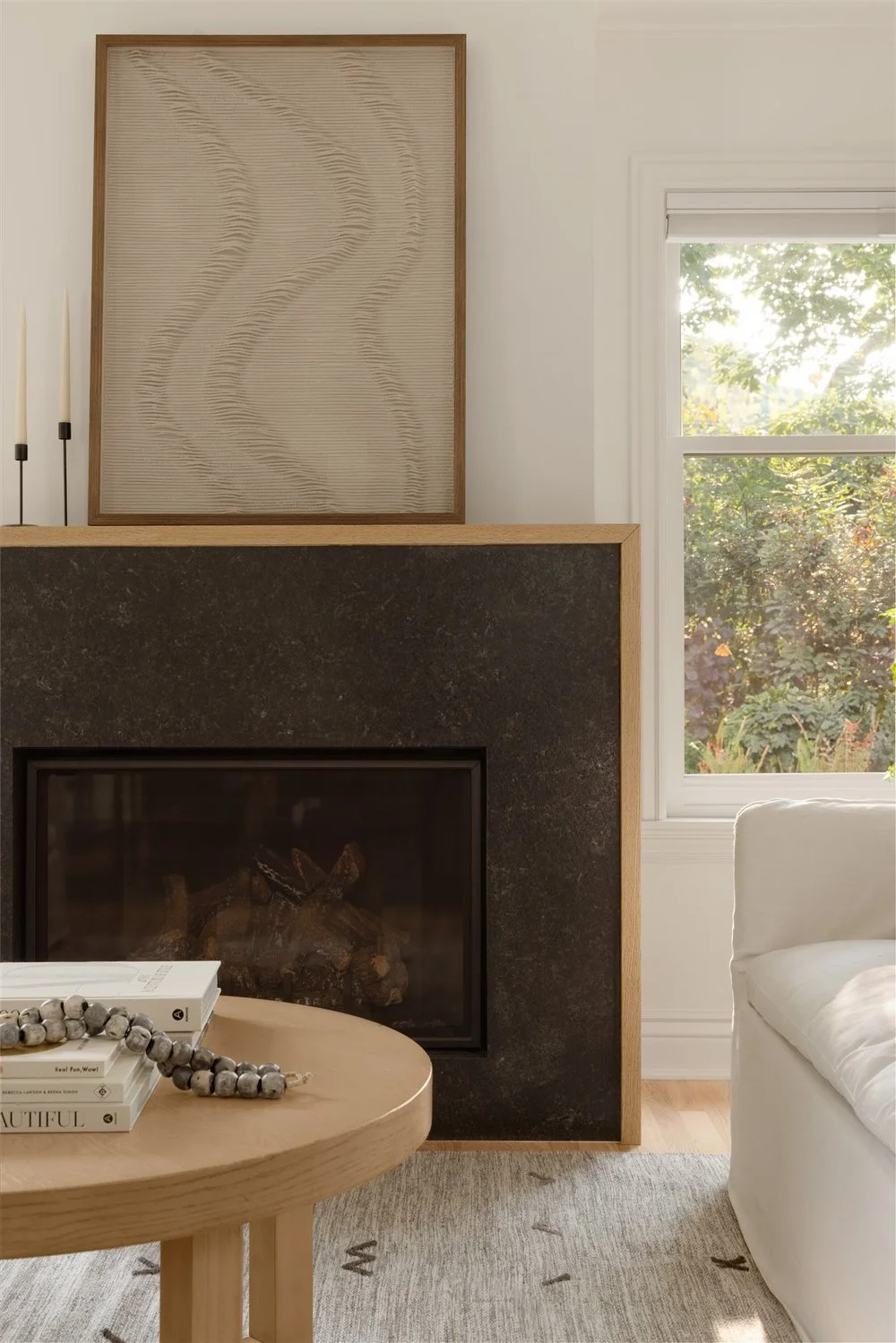 Our design and construction teams at Tectonic came together to craft a beautiful custom staircase that bridges modernity with detailed wood craftsmanship. Featuring the same oak hardwood as the floors, we added modern black balusters complemented by Newell posts with a groove reveal on the top cap. These small but impactful details reflect the home’s original decorative character but with more contemporary materials.